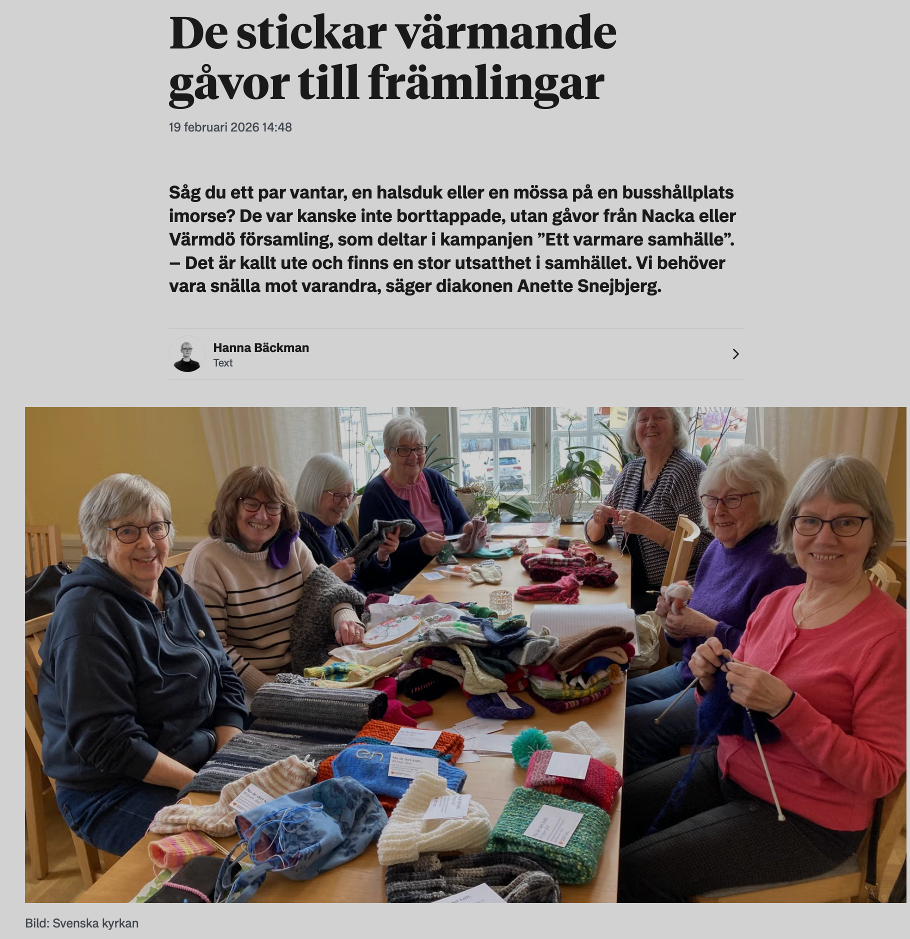 Sociala medier fylldes av inlägg från köldnupna församlingsmedarbetare som så tidigt som klockan fyra på morgonen delade ut hemstickat i busskurer och på andra offentliga platser. Det är alster som under veckor, ibland månader, har producerats av medlemmar för att kunna delas ut denna kalla torsdagsmorgon i februari.