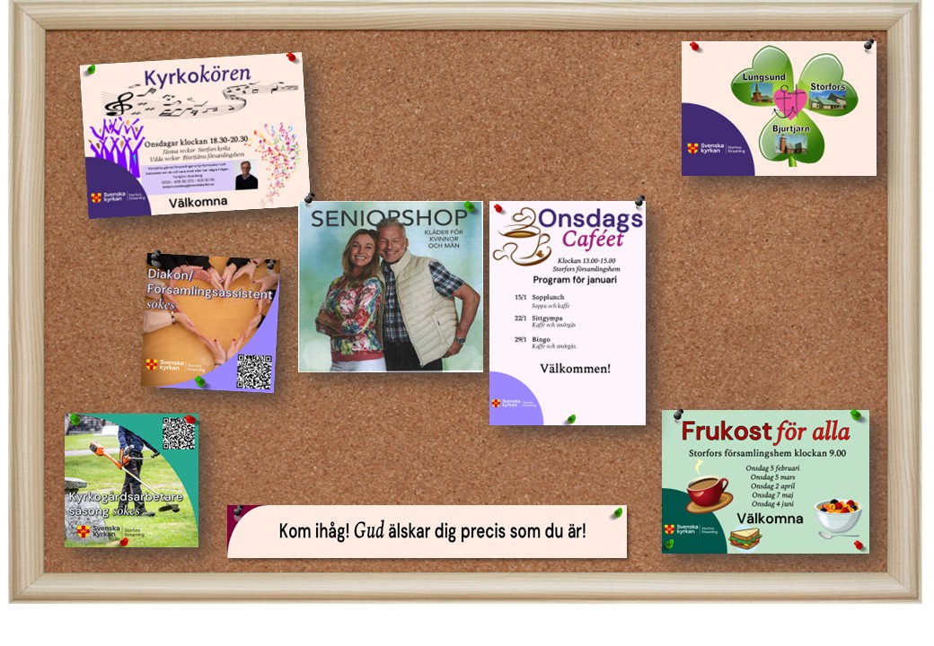 På anslagstavlan publicerar vi alla aktuella affischer som gäller för närmaste veckan och månaden.