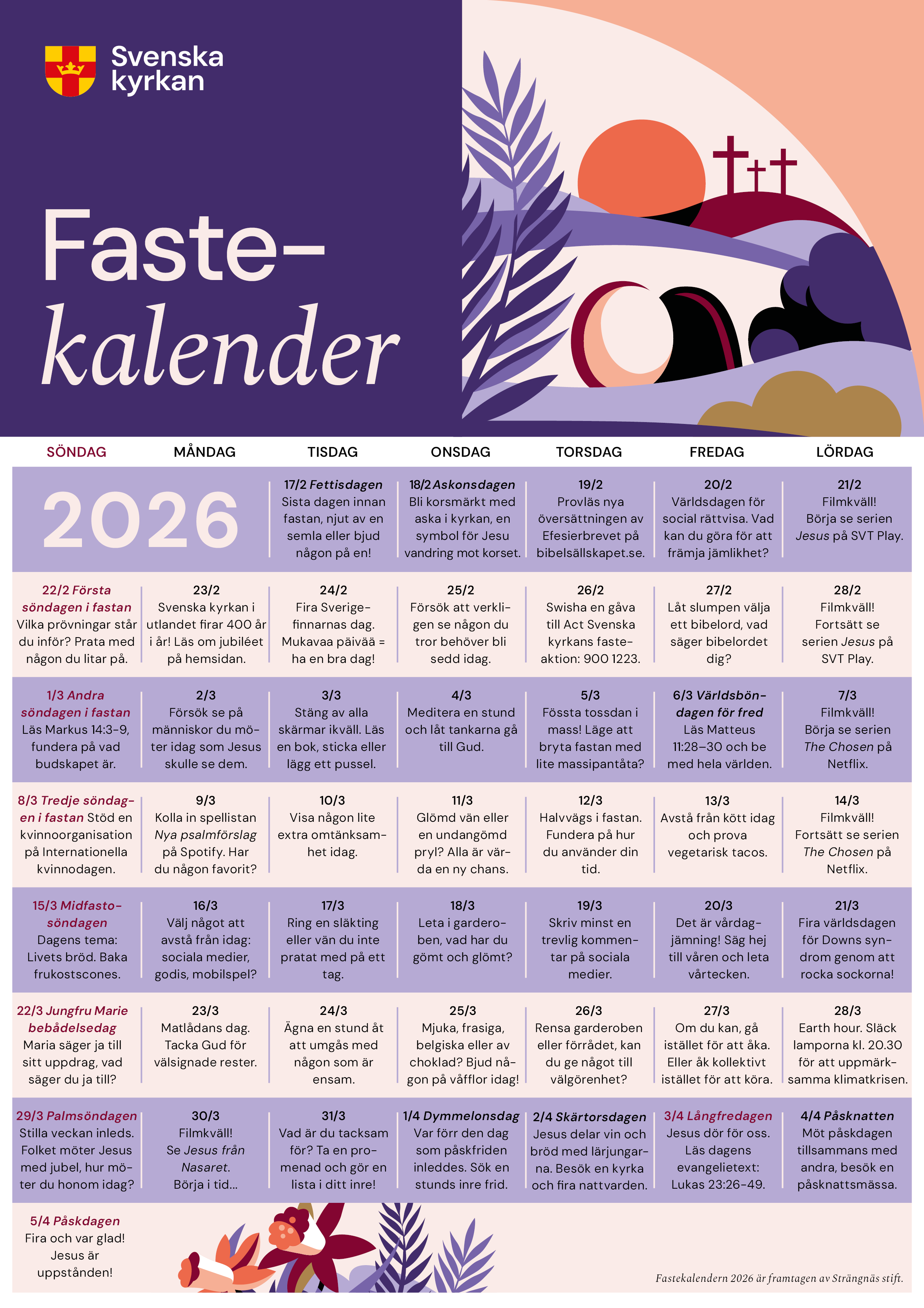 Kanske kan denna kalender vara till inspiration! Ladda ner fastekalendern som pdf här.
