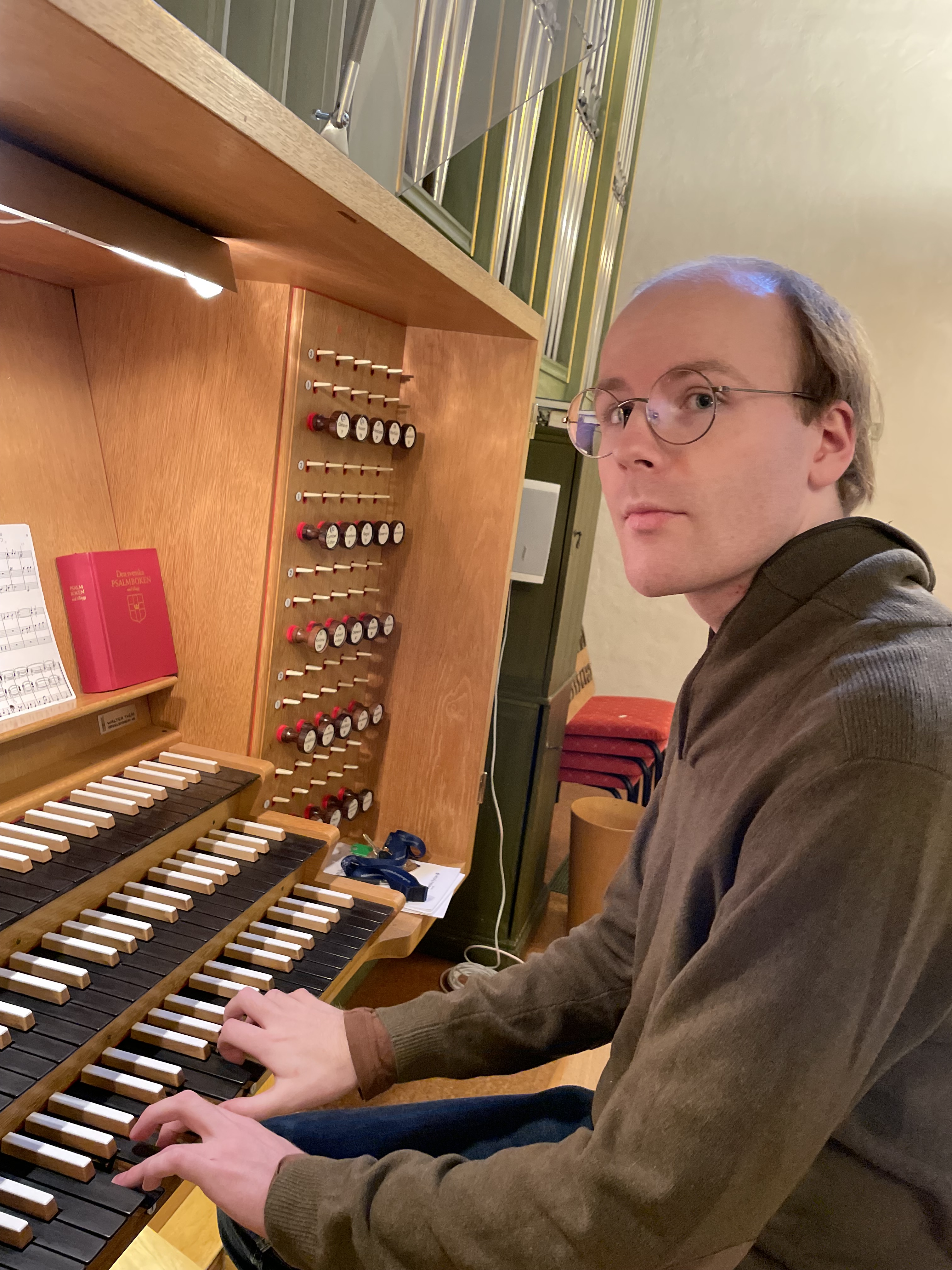 Aston Andersson välkomnar dig med värme till en stämningsfull gudstjänst där musiken kommer nära och orgelns vackra toner når ända in i själen.