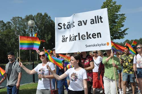Under dagen hördes flera uppskattande kommentarer kring Svenska kyrkans deltagande i Pridefestivalen och många tog bilder på den banderoll som fördes fram i Pridetåget med texten ”Störst av allt är kärleken”.