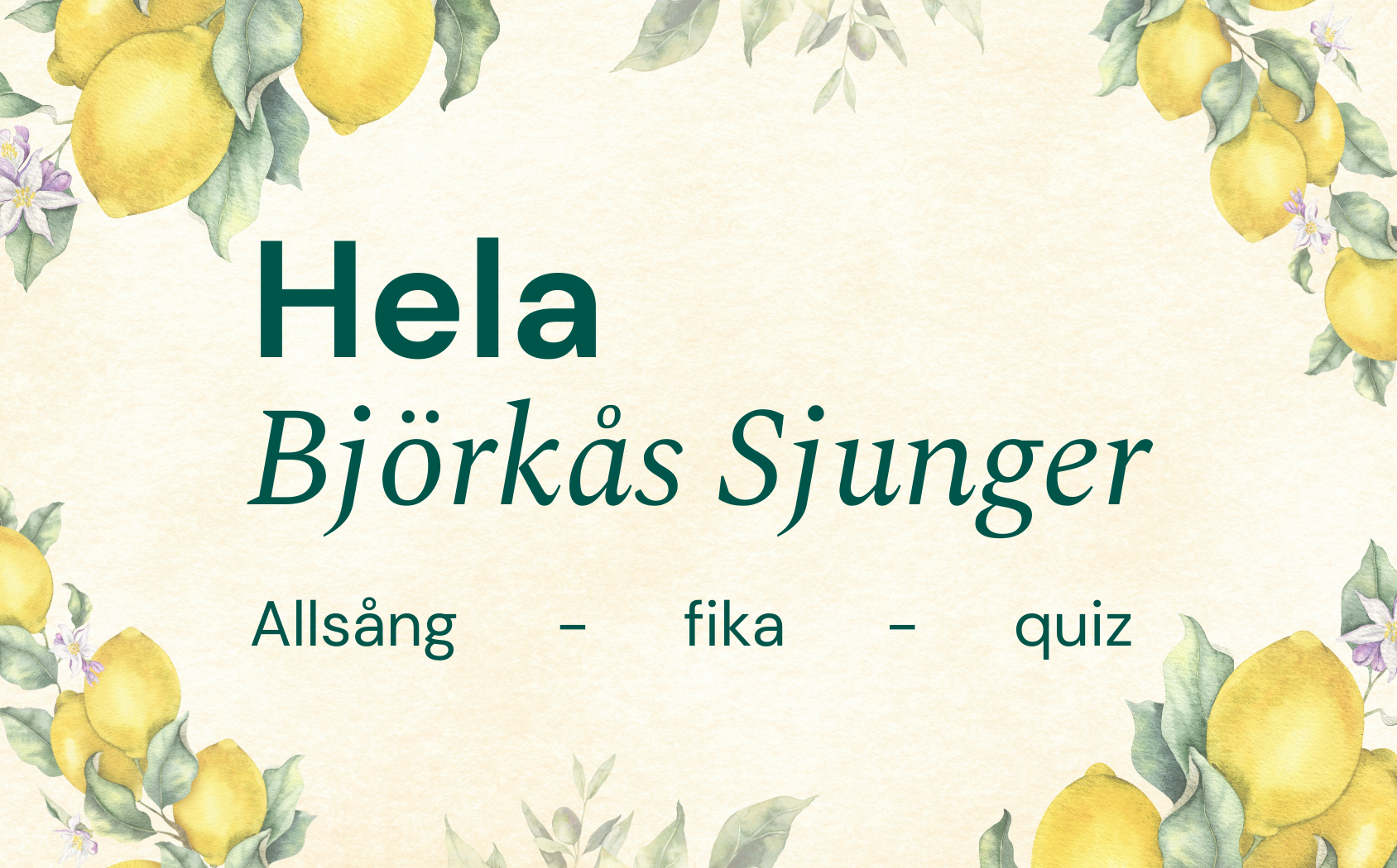 Vi bjuder in till härliga allsångskvällar med quiz där vi samlas för att sjunga tillsammans i gemenskap och glädje. Under kvällen finns även hembakt fika att köpa till självkostnadspris.