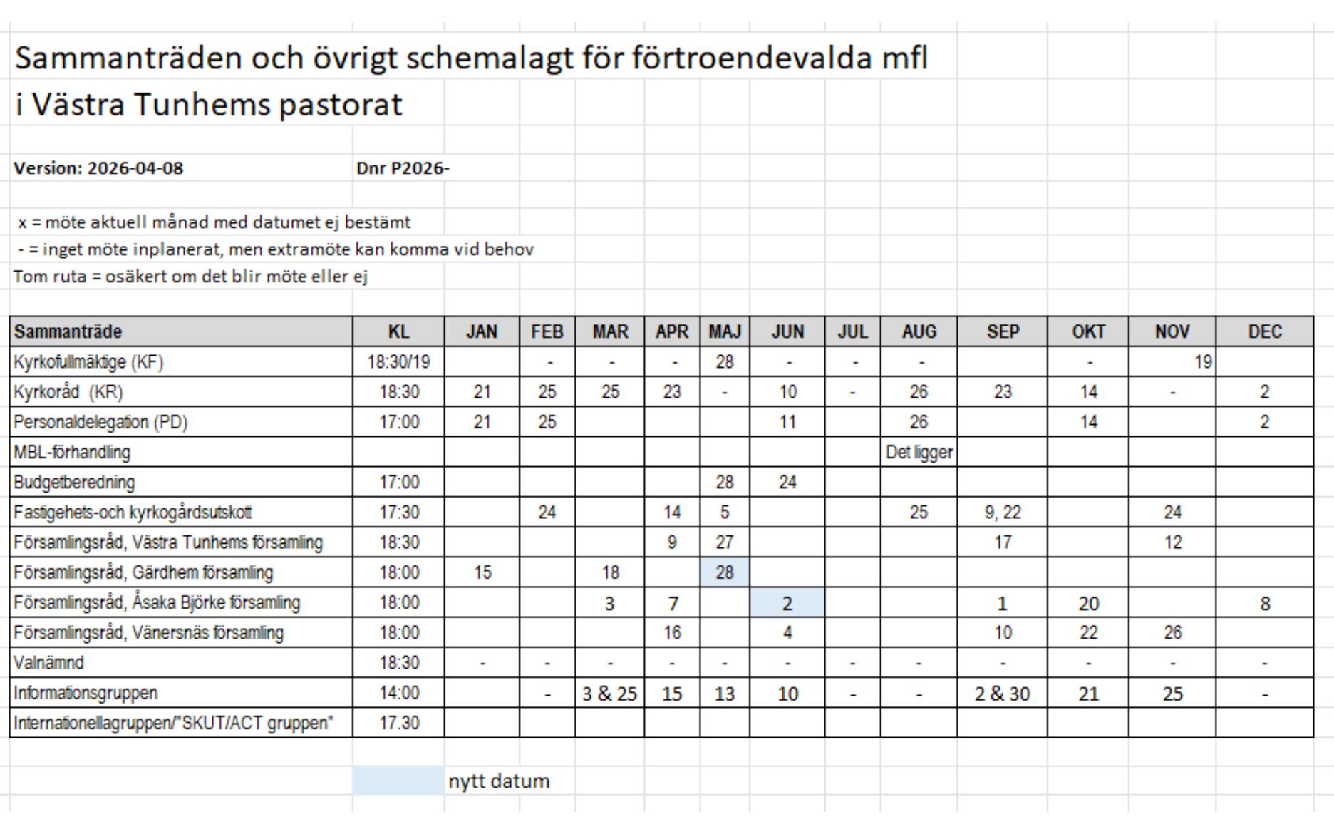 Planerade sammanträden