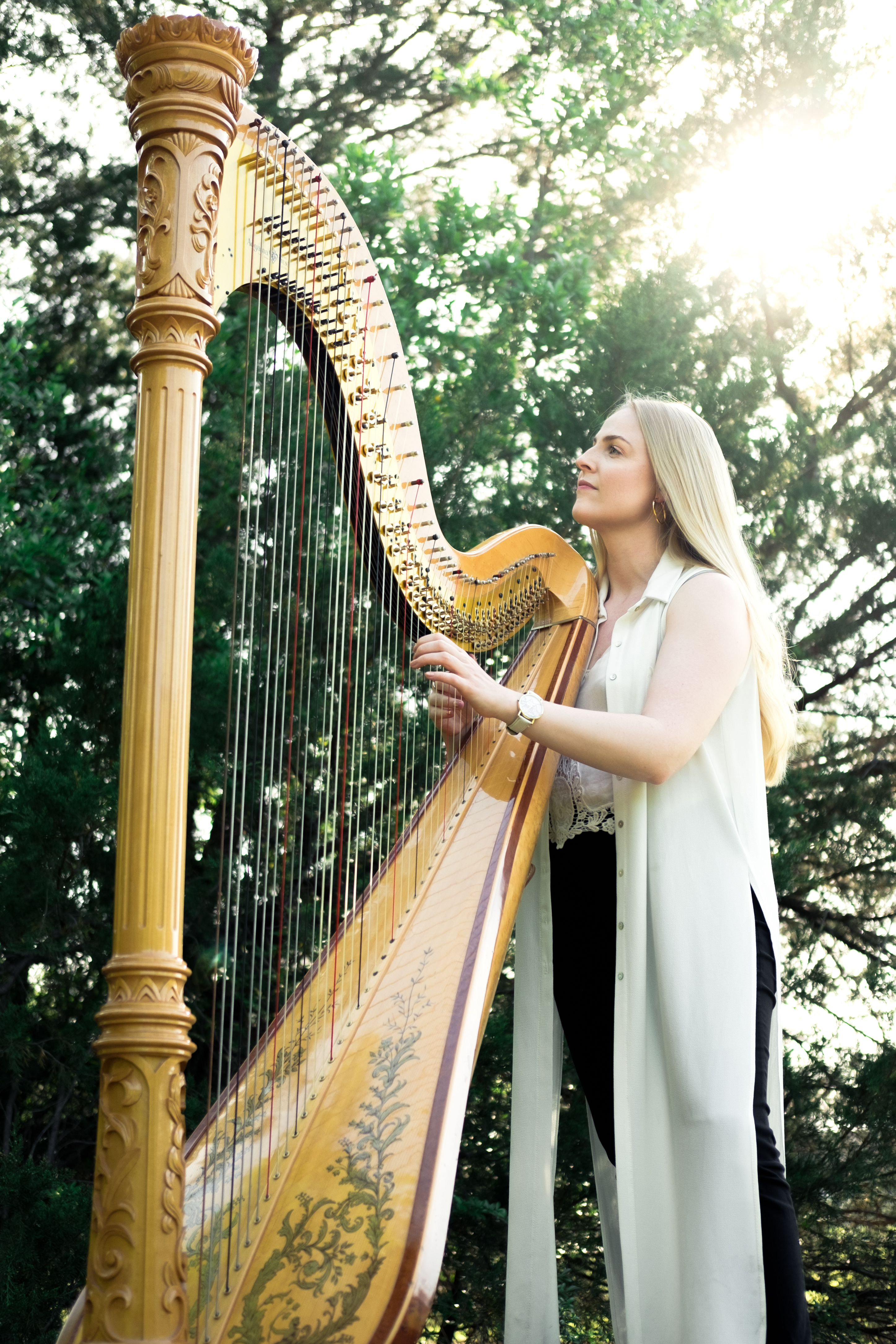Med harpa och sång framför hon visor och psalmer med stor innerlighet, och berättar samtidigt om det ovanliga och fascinerande instrumentet.