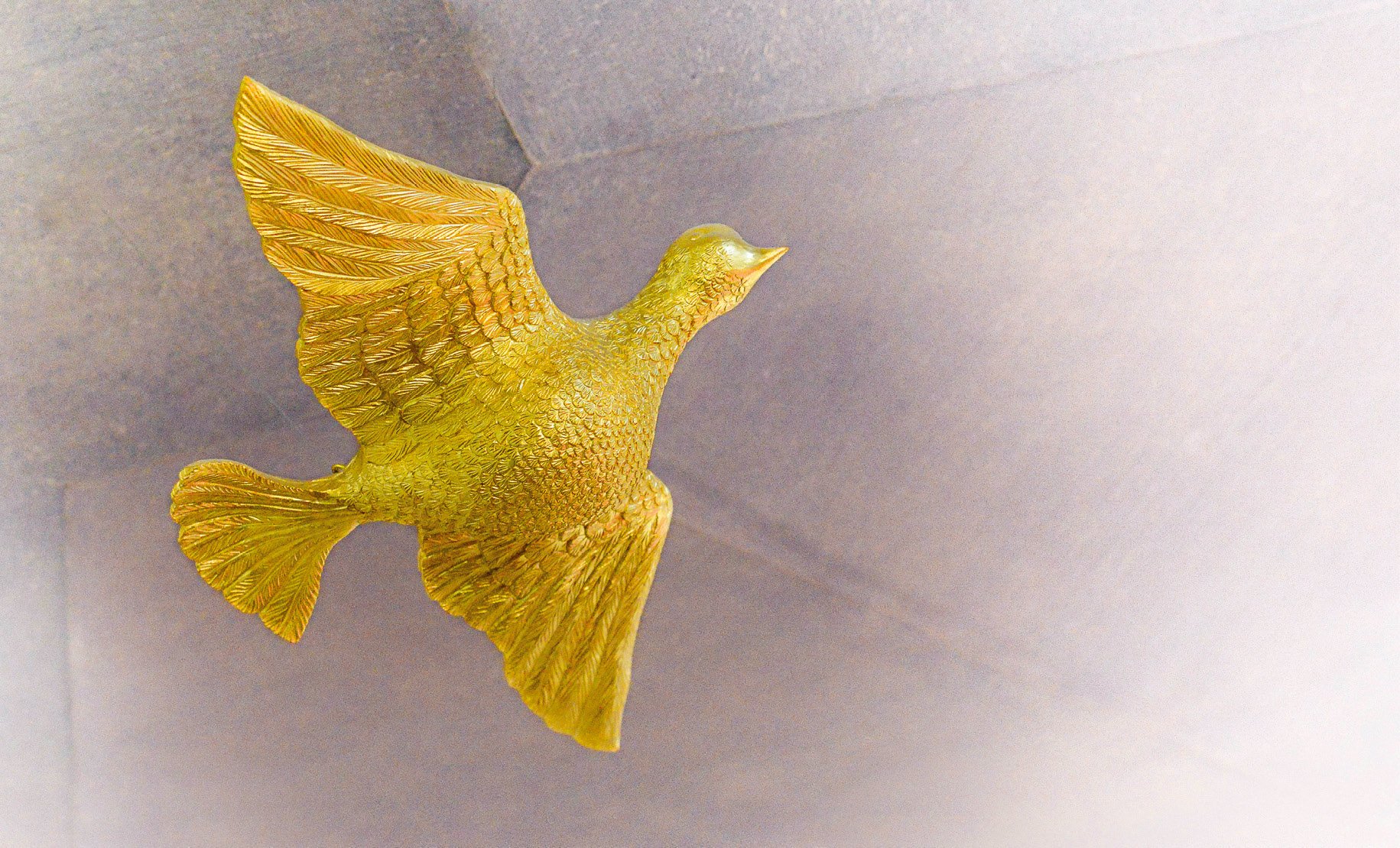 Duvan som symbol för den heliga Anden hänger ofta vid predikstolen, som här