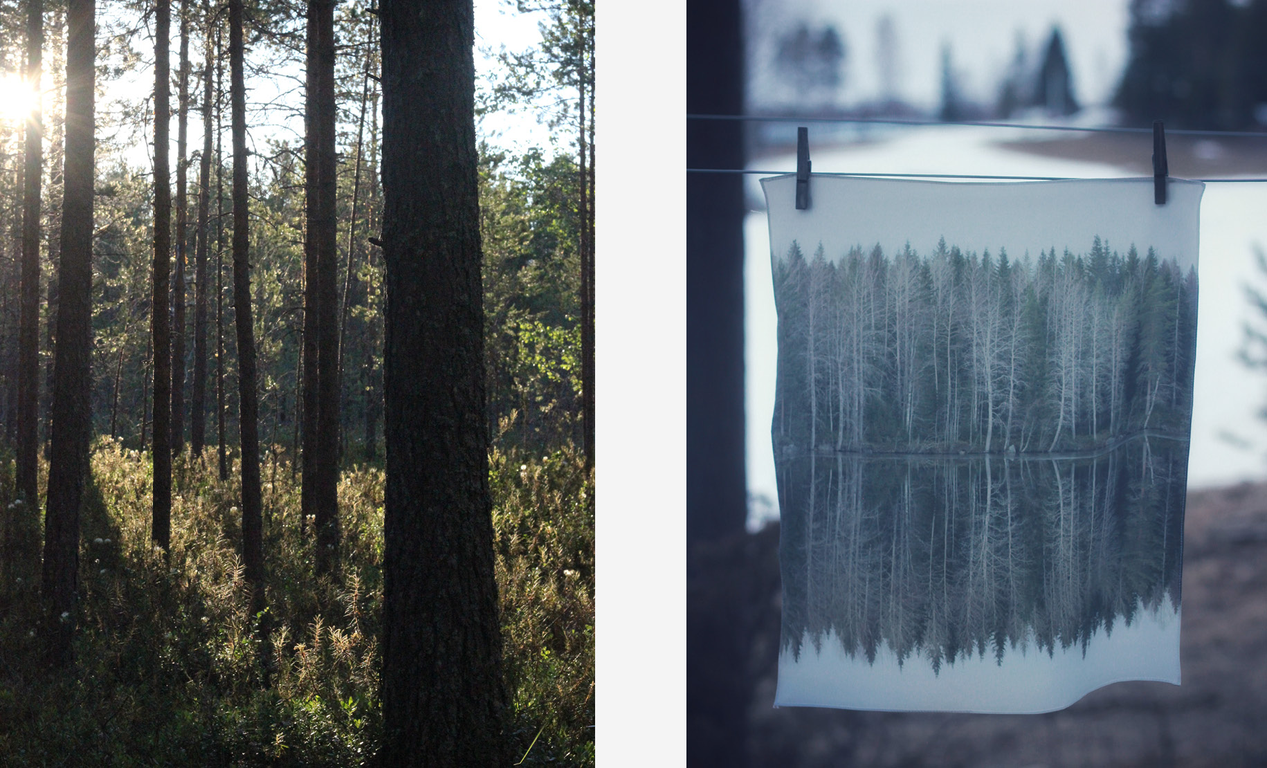 – Det blev lite för hårt. Jag är svag för textil och hittade ett ställe där de trycker på sidentyg. När bilderna trycks på tyg blir rörelsen och ljuset från naturen kvar och därför ligger de bilderna närmast mitt hjärta, säger Magdalena Sandberg.