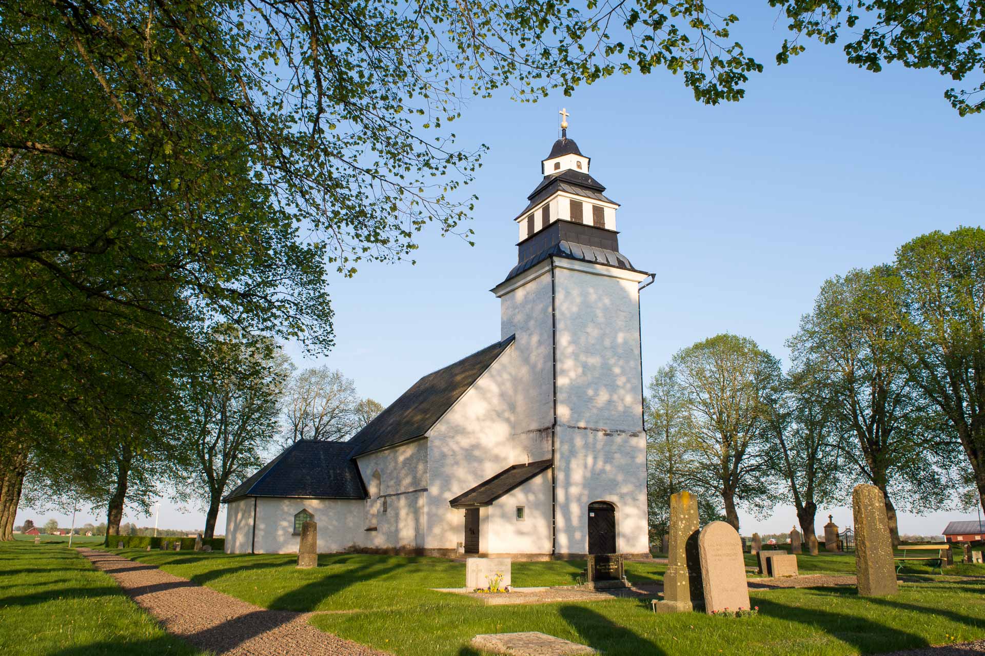Kyrkan kom till under 1100-talets slut eller omkring år 1200. Den bestod då av långhus med kor och absid i öster och ett smalt torn i väster. Vid medeltidens slut slogs valv. Kyrkan har rektangulärt långhus med sakristia vidbyggd på norra sidan. Västtornet, vars nedre del härrör från medeltiden, är något förskjutet åt söder och kröns av en huv med lanternin. Fasaderna är vitputsade.