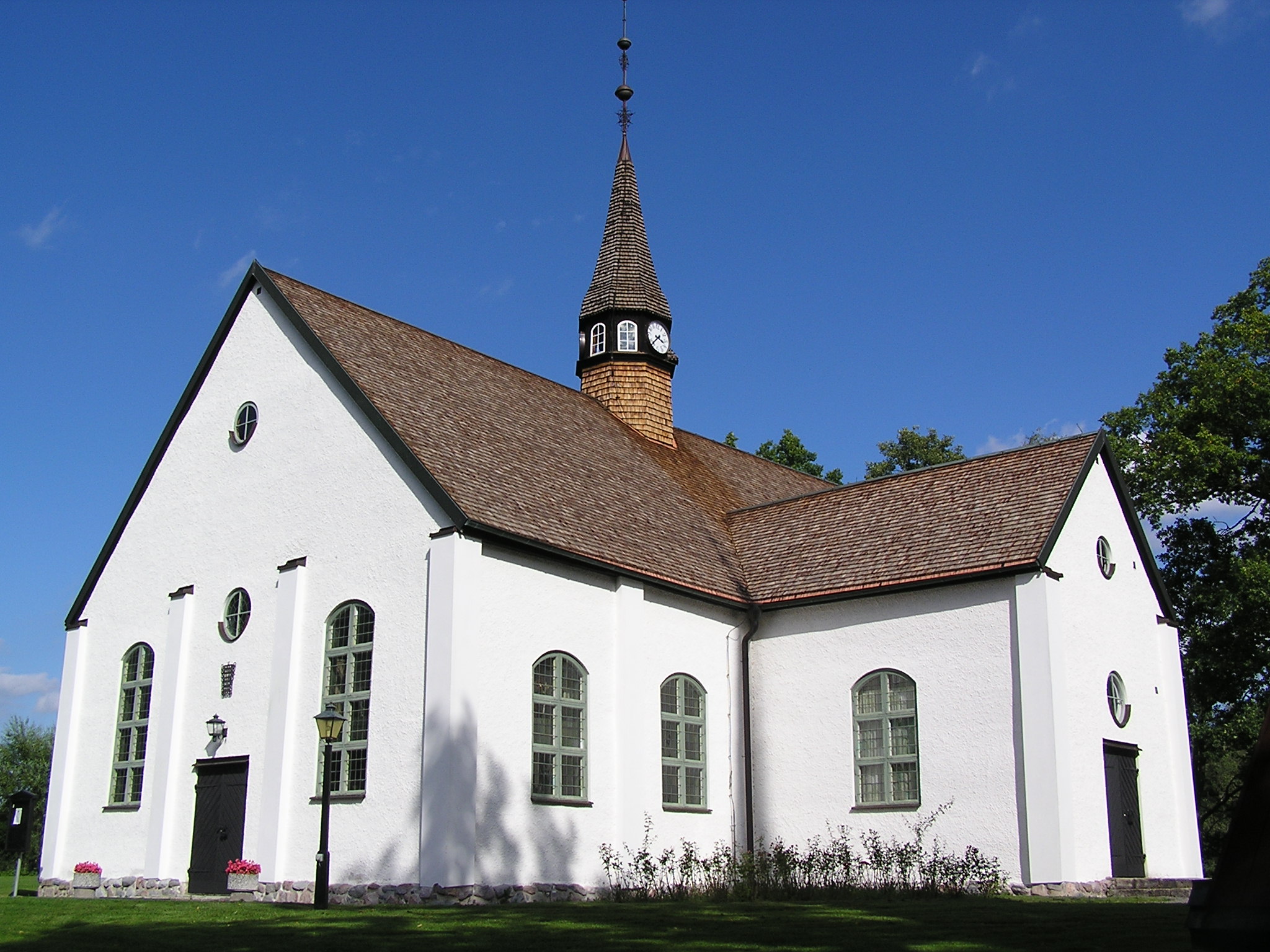 Kyrkan blev en enkel rektangulär byggnad med högt, brant tak och invändigt tunnvalv av trä (sedermera platt). På norra sidan finns en sakristia och på den södra uppfördes ett vapenhus, som senare införlivades med kyrkan. Kyrkan invigdes 1731 av biskop Eric Benzelius.