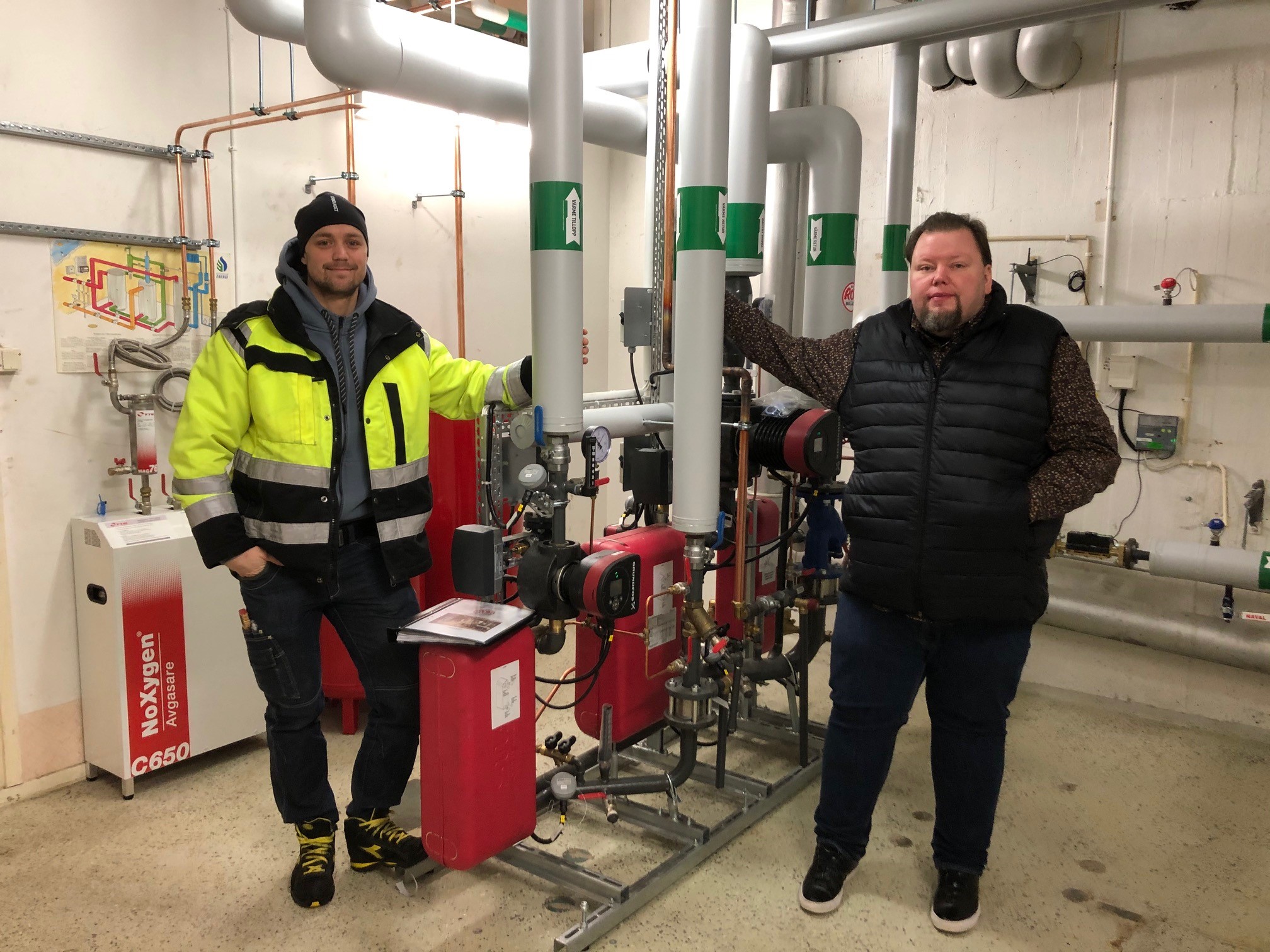 ”Församlingen har fått en sprillans ny undercentral som ersätter den gamla som var 40 år gammal. Det var hög tid eftersom en undercentrals livslängd normalt är 25 år. Med den gamla centralen har energiåtgången varit väldig hög men exakt hur mycket vi kommer att tjäna på att installera den nya är osäkert ännu, innan vi hunnit mäta, men vi räknar med en hel del i alla fall.Vad är det då vi tjänar in? Den nya undercentralen är mycket mer energisnål än den gamla tack vare de nya pumparna och den nya avgasaren som ger ett renare och effektivare system. Till följd av detta blir det även mer kostnadseffektivt.Det gamla styrskåpet var i gott skick och återanvändes förstås. Resterna från den gamla undercentralen har naturligtvis gått till återvinning.Varmt tack till Ludvig Söderblom och Rörbolaget som installerat den nya undercentralen.”