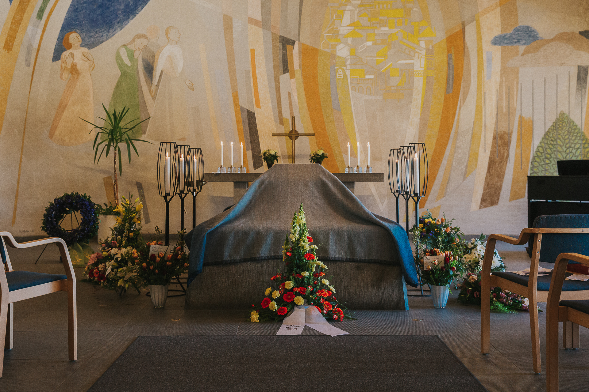 Många kyrkor har egna bårtäcken. Vilka det är ser du här.