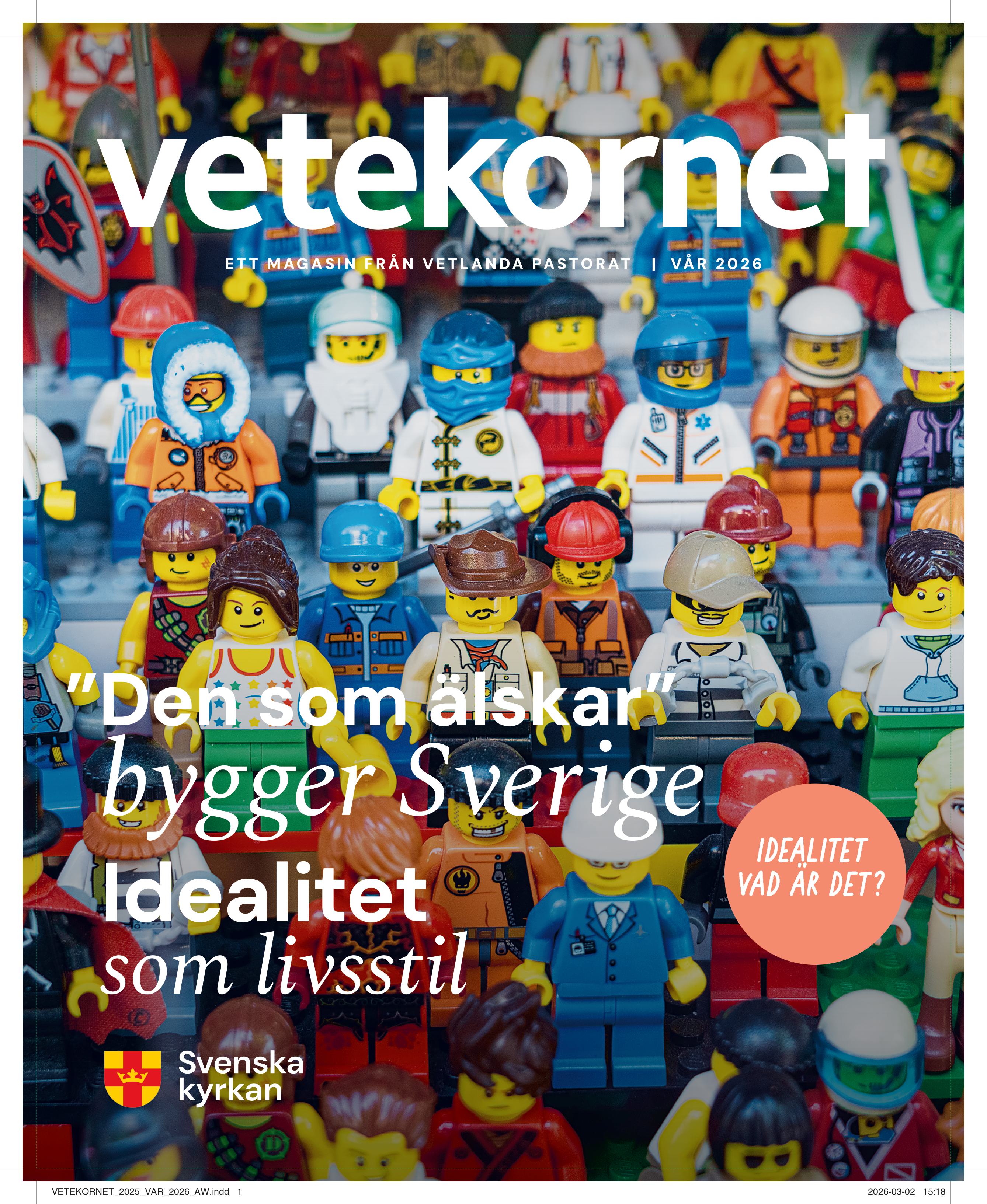 Detta nummer har temat Idealitet - vad är det? Vetekornet Vår 2026 delas ut i brevlådorna runt den 23 mars, för att finnas på plats i god tid inför påsken.