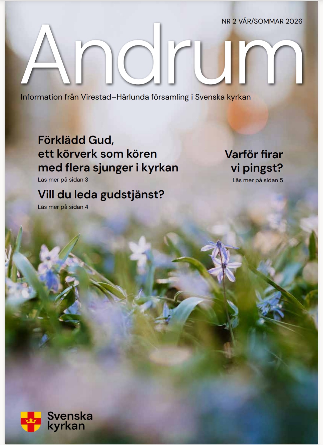 Församlingsbladet Andrum delas ut som samhällsinformation vilket betyder att den kommer gratis till alla brevlådor i församlingen. Från och med första numret 2026 kommer Andrum att komma ut fem gånger per år (istället för fyra).
