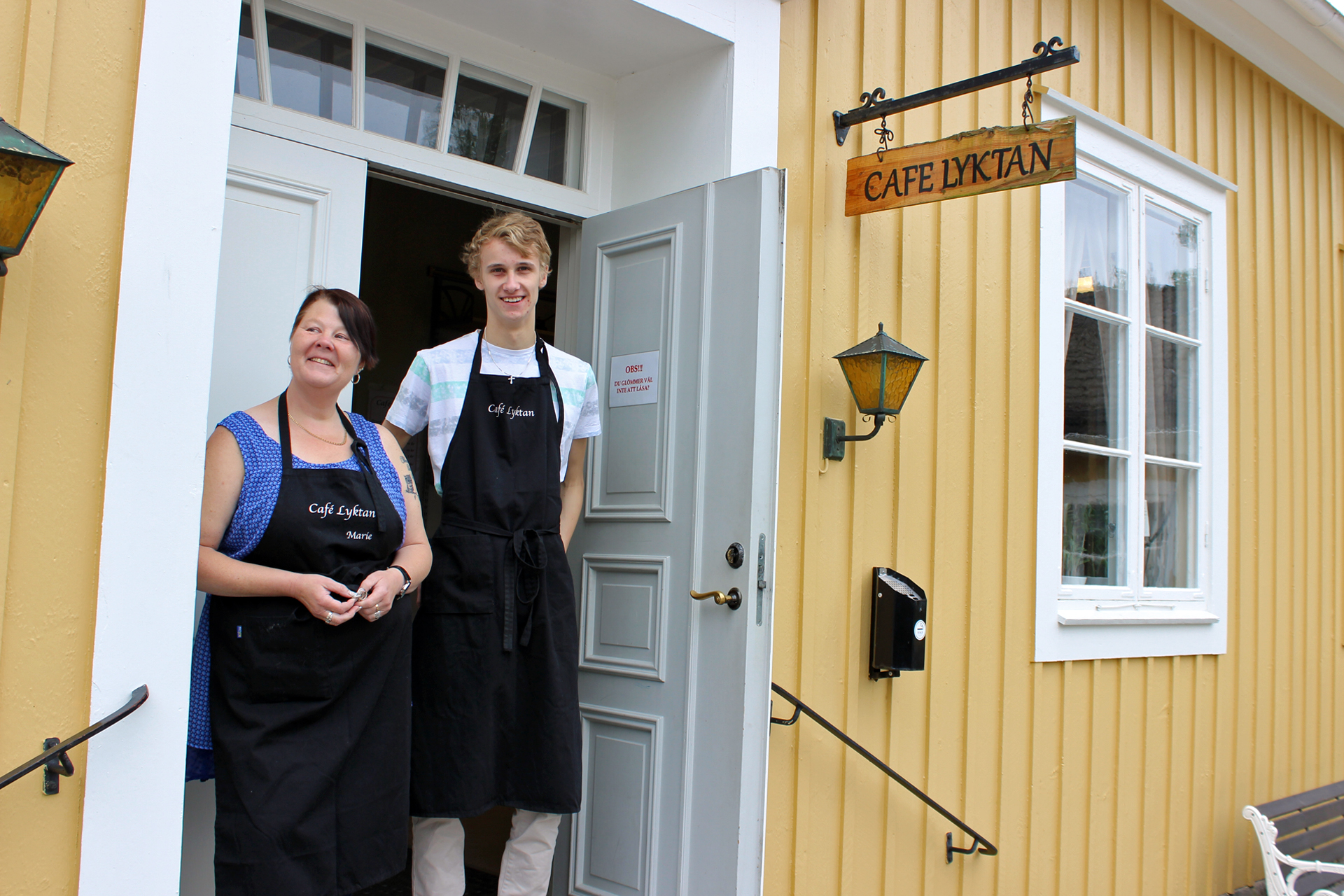 Vår husmor Marie håller församlingshemmet öppet ett par veckor på somrarna och serverar kaffe, te, saft, kakor och inte minst våfflor. Vill du hellre ha en macka går det också bra.