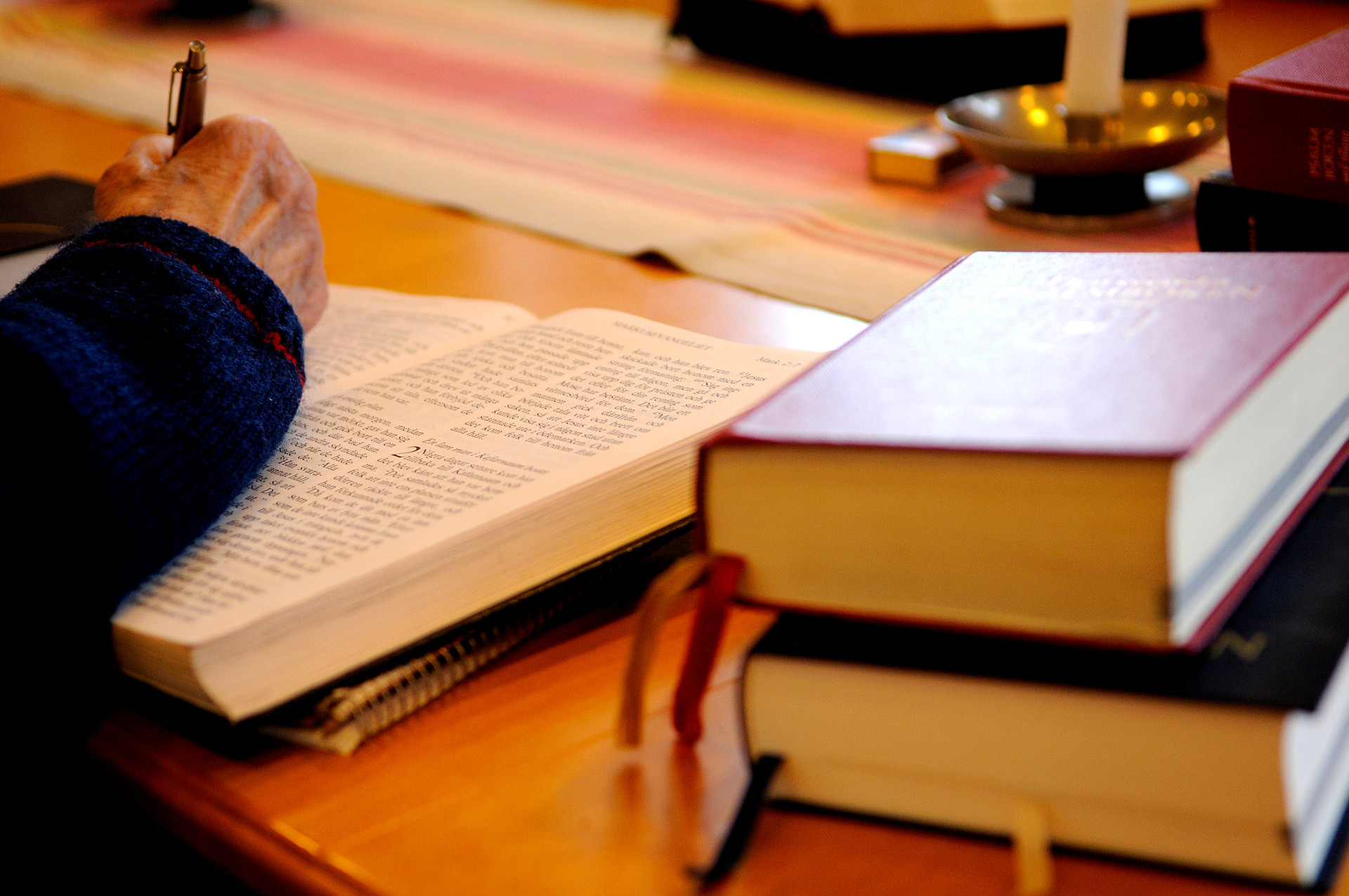 Vi träffar på övervåningen i församlingsalen, torsdagar kl. 18.30-20.00.
