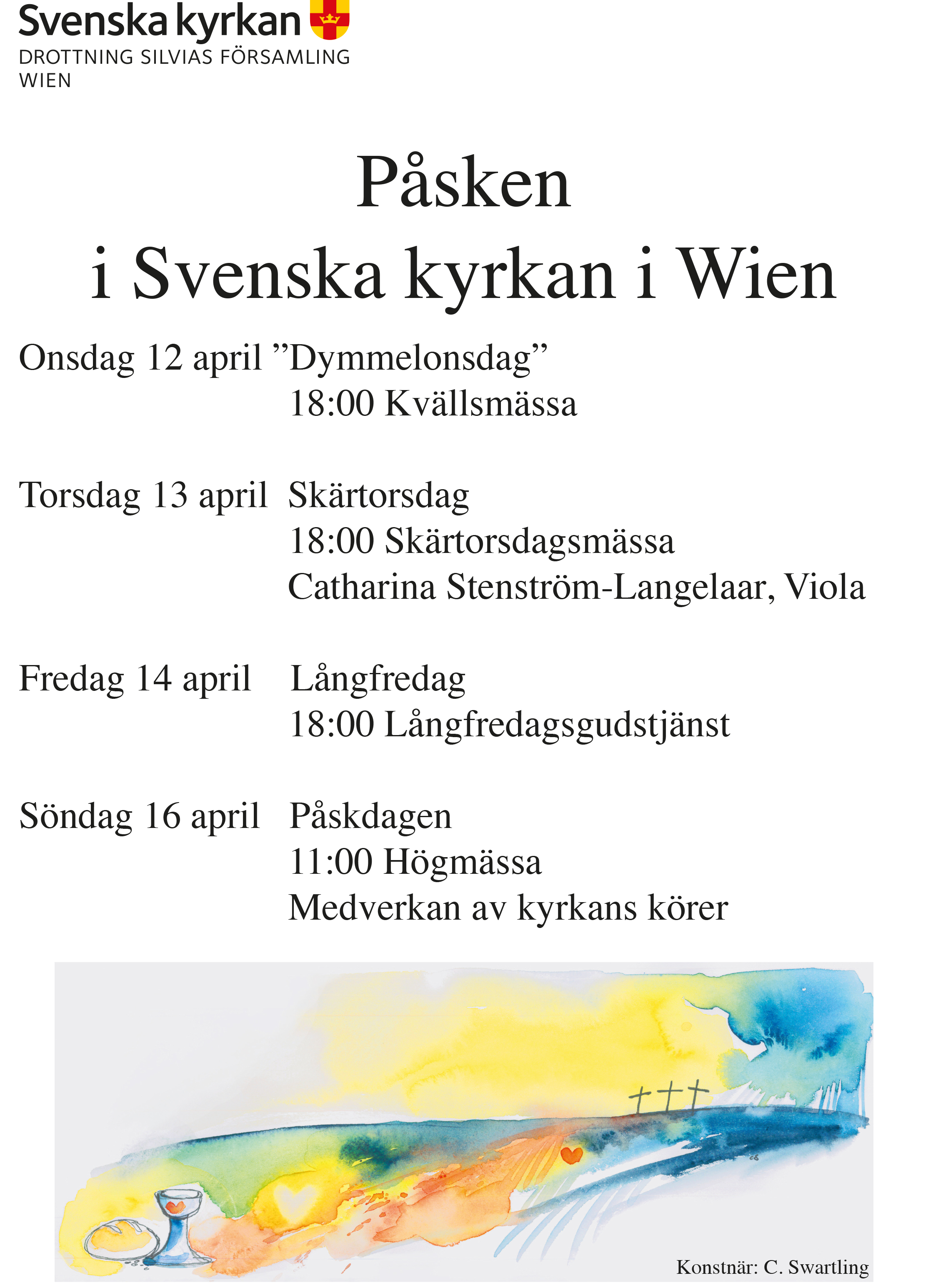 Välkomna att fira påsk hos oss i Svenska Kyrkan i Wien. Det finns många möjligheter att vara med i sorg och glädje - vi hoppas Du kan hitta en som passar Dig, eller alla!