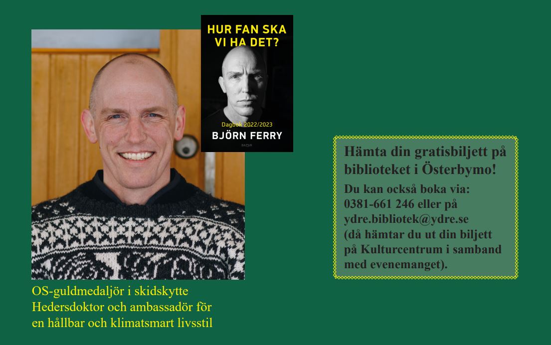 Välkommen till Kvällssoffan på Ydre Kulturcentrum i Österbymo onsdagen den 14 maj kl 19.00! Björn Ferry ger sina bästa tips för ett hållbarare vardagsliv.