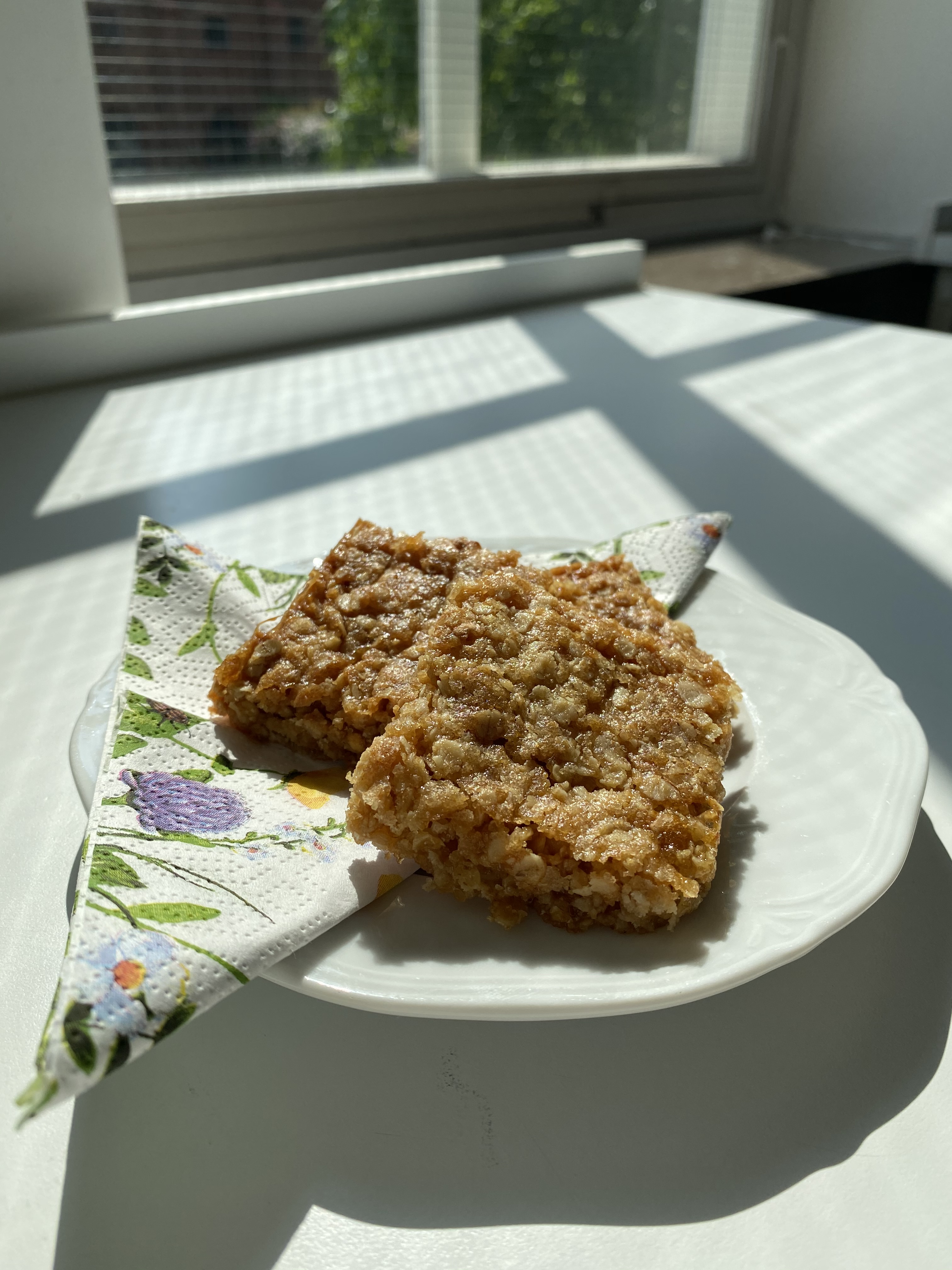 Smält smöret i en stor gryta och rör ner övriga ingredienser. Bred ut smeten i en långpanna klädd med bakpapper. Grädda i 175 grader tills kakan blir ljusbrun. Den stelnar när den svalnar! Skär i rutor.